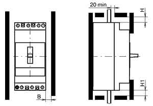 ● Подключение Выключатели допускают возможность присоединения шин, кабелей без кабельного наконечника из меди и алюминия. Сечение подключаемых проводников от 6 до 50 mm2. ● Минимальные расстояния от металлических заземленных частей (или изоляционных щитков распределительных устройств) до выключателей АЕ 2040-10Б