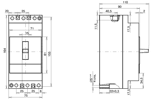#9679; Время-токовые характеристики выключателя АЕ 2046 ![]() ГАБАРИТНЫЕ, УСТАНОВОЧНЫЕ И ПРИСОЕДИНИТЕЛЬНЫЕ РАЗМЕРЫ● Выключатель АЕ 2040-10Б на номинальные токи 10 - 63 А![]() ● Выключатель АЕ 2040-10Б на номинальные токи 80 А; 100 А ![]() ● Масса выключателя АЕ 2040-10Б