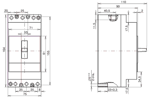 20 - порядковый номер разработки; Х - номинальный ток выключателя: 4 - 100А; Х - условное обозначение числа полюсов и наличия расцепителей: